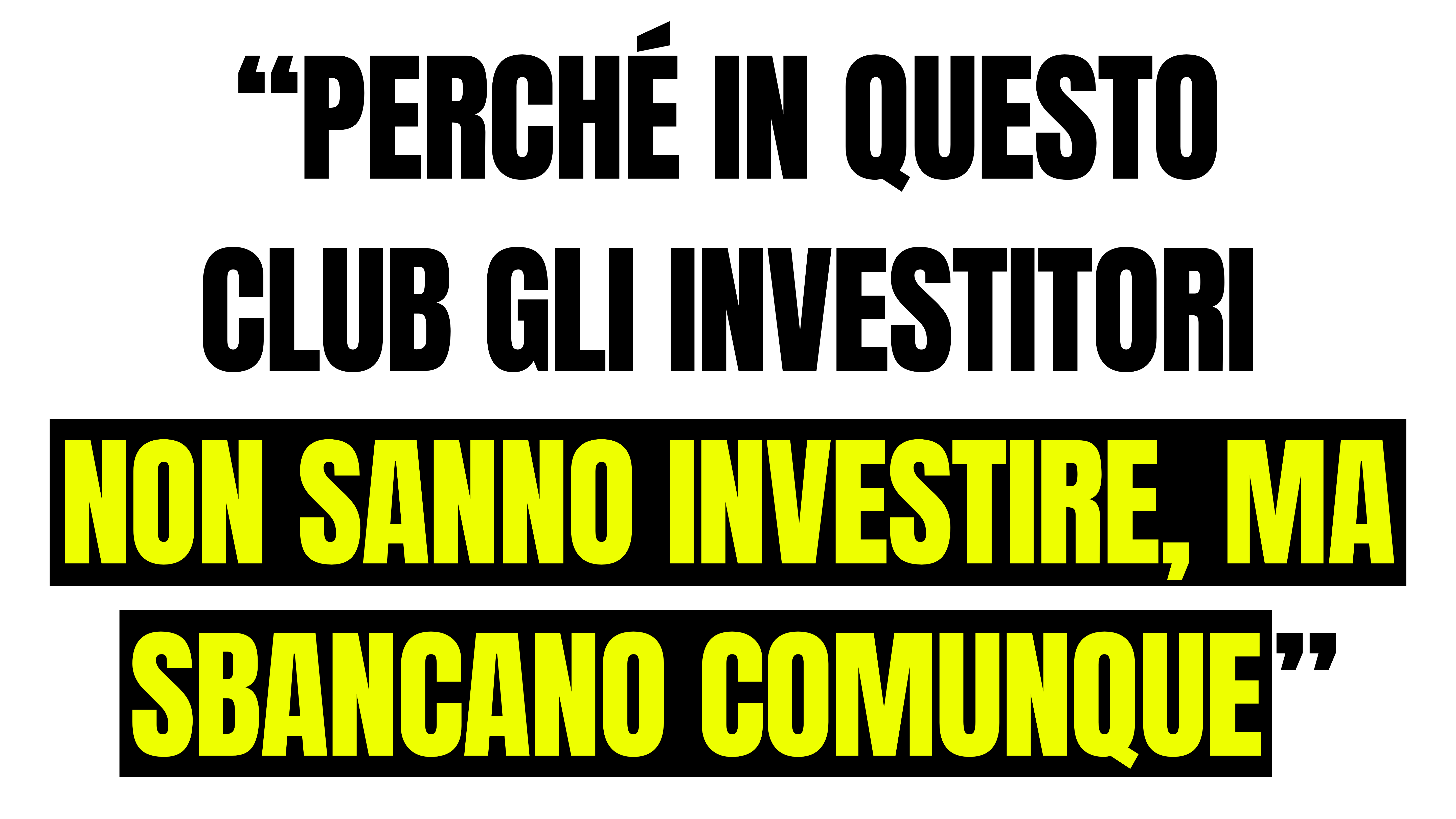 Perché nel Club siamo amanti dei profitti, ma soprattutto DETESTIAMO PERDERE.