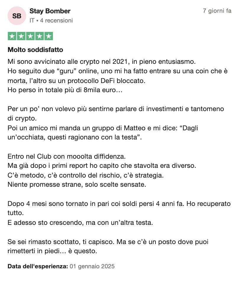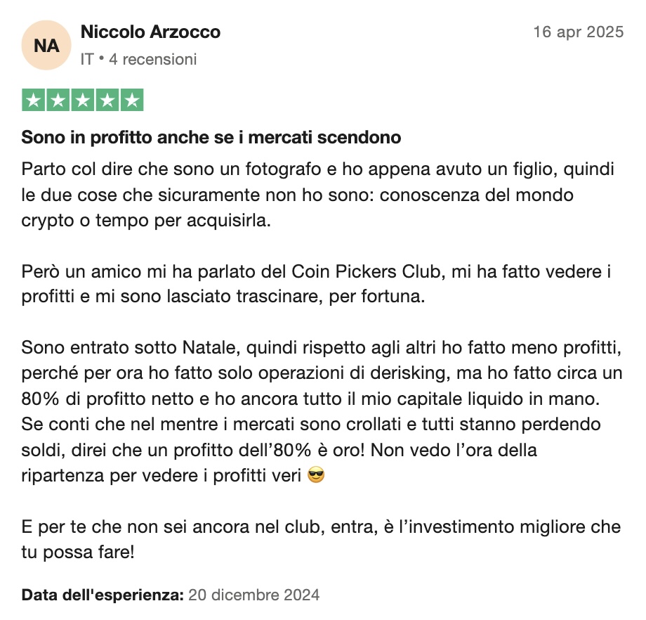 È così che a Novembre del 2024 è nato il Coin Pickers Club, un club esclusivo, per investitori che vogliono fare sul serio.