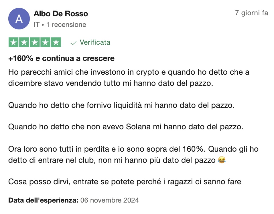 Investitori che non avevano mai comprato una cripto in vita loro erano sopra del 120% - 150% netto in 5 settimane. Fino al giorno prima stappavano lo champagne se tiravano fuori un +10% l’anno.